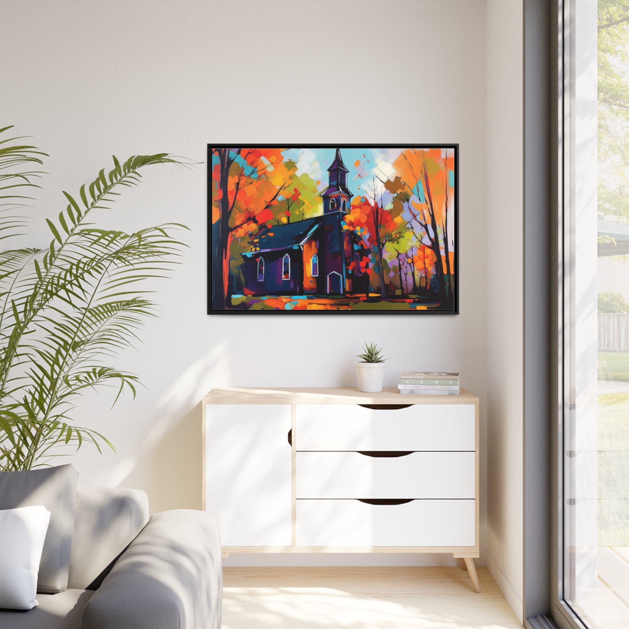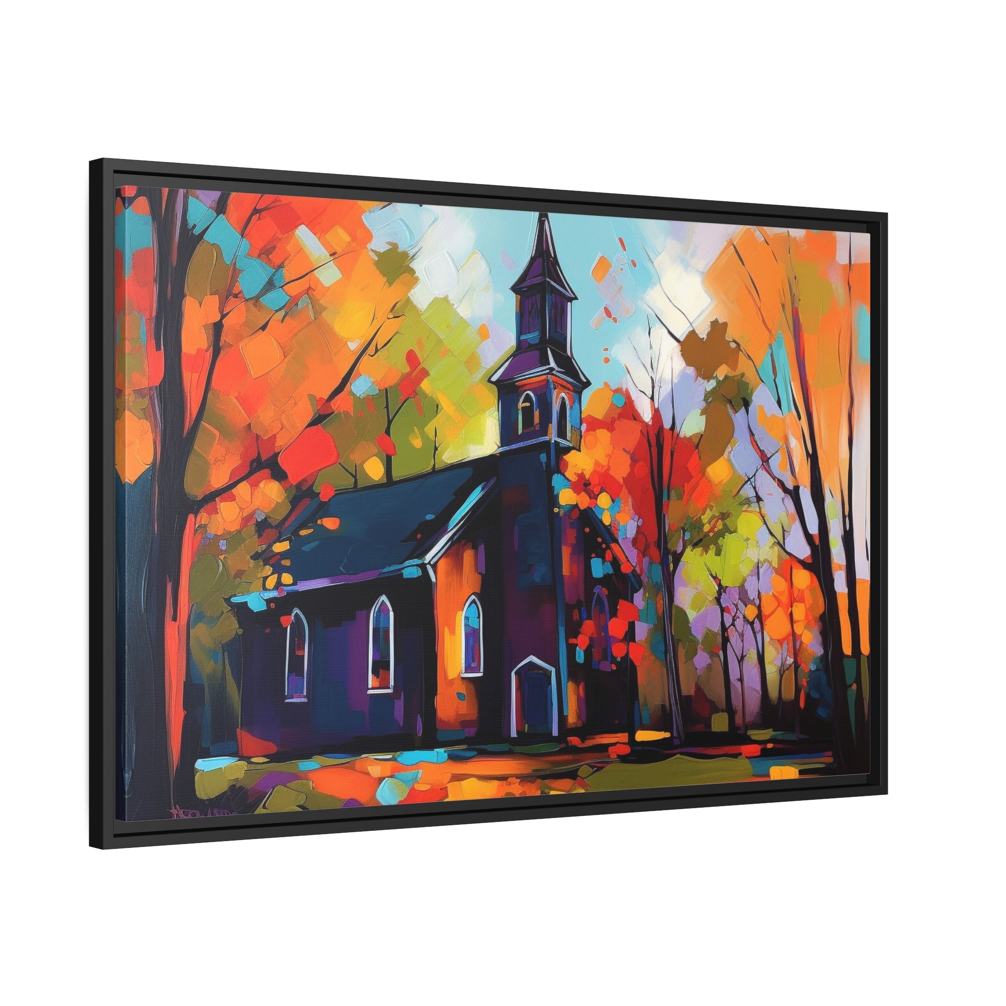 Vibrant Church I Matte Canvas, Black Frame